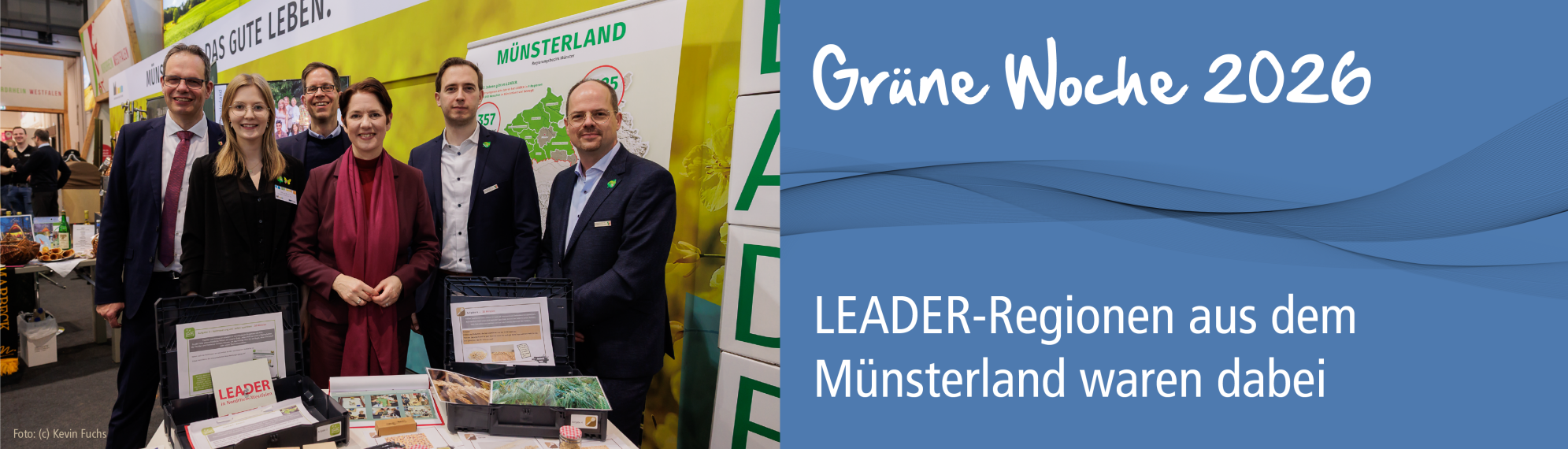 Die Grüne Woche in Berlin, die international wichtigste Messe für Ernährungswirtschaft, Landwirtschaft und Gartenbau, feierte dieses Jahr ihr 100-jähriges Jubiläum – und das Münsterland und LEADER waren als zentraler Aussteller mit dabei. Das Land Nordrhein-Westfalen gibt traditionell jedes Jahr seinen… - Regionalbudget 2026: Im Februar geht’s los!