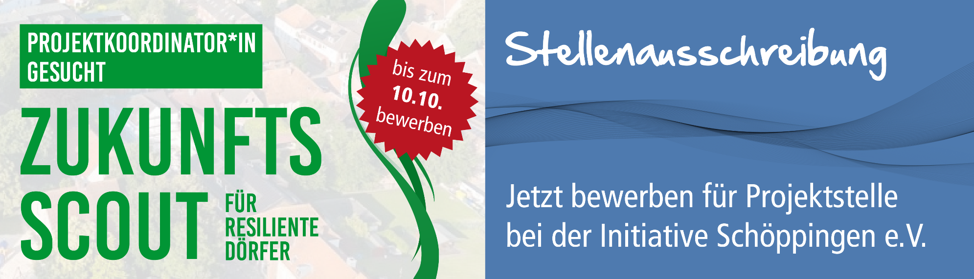 - ProjektkoordinatorIn gesucht!Aufgepasst: Die Initiative Schöppingen e.V. sucht für das Modellprojekt „ZukunftsScouts“ für resiliente Dörfer zum 01.11.2025 oder später eine/n ProjektkoordinatorIn mit 20 Wochenstunden. Bewerben auf die auf zunächst drei Jahre befristete Stelle kann man sich bis zum 10. Oktober. Wir haben…