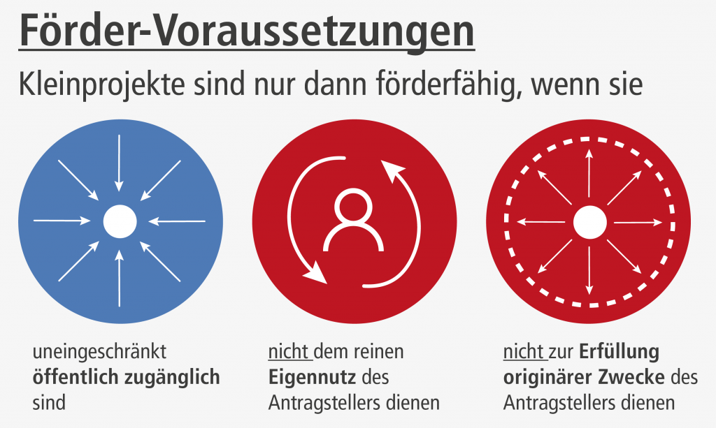 - Es werden nur Kleinprojekte gefördert, die gewisse Voraussetzungen erfüllen: